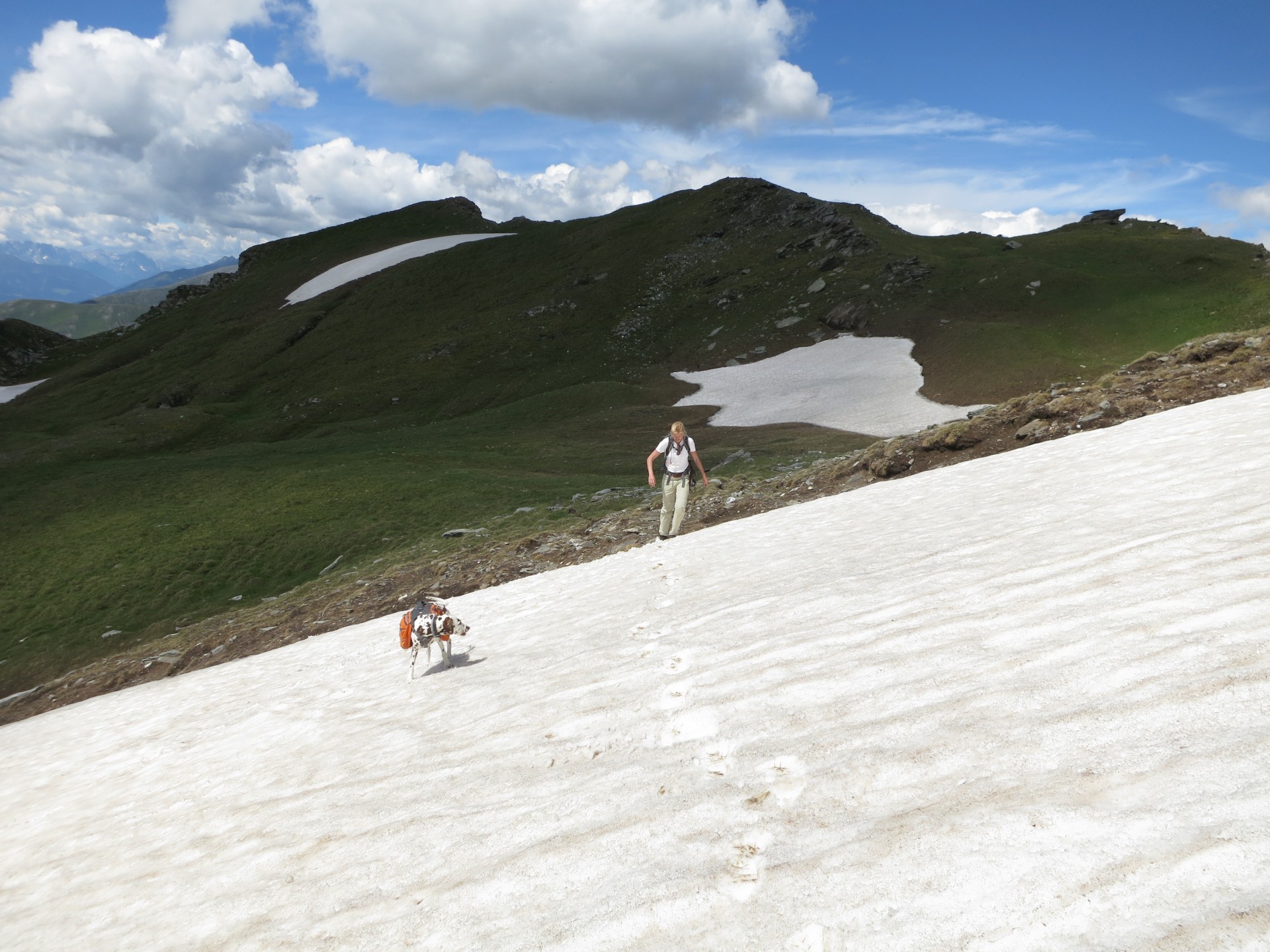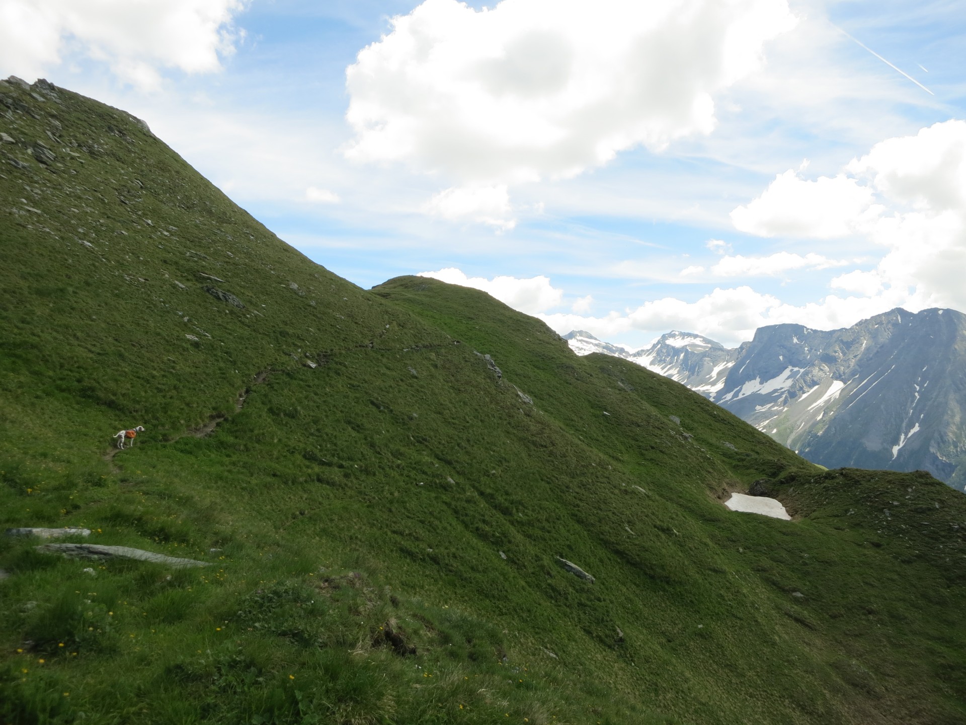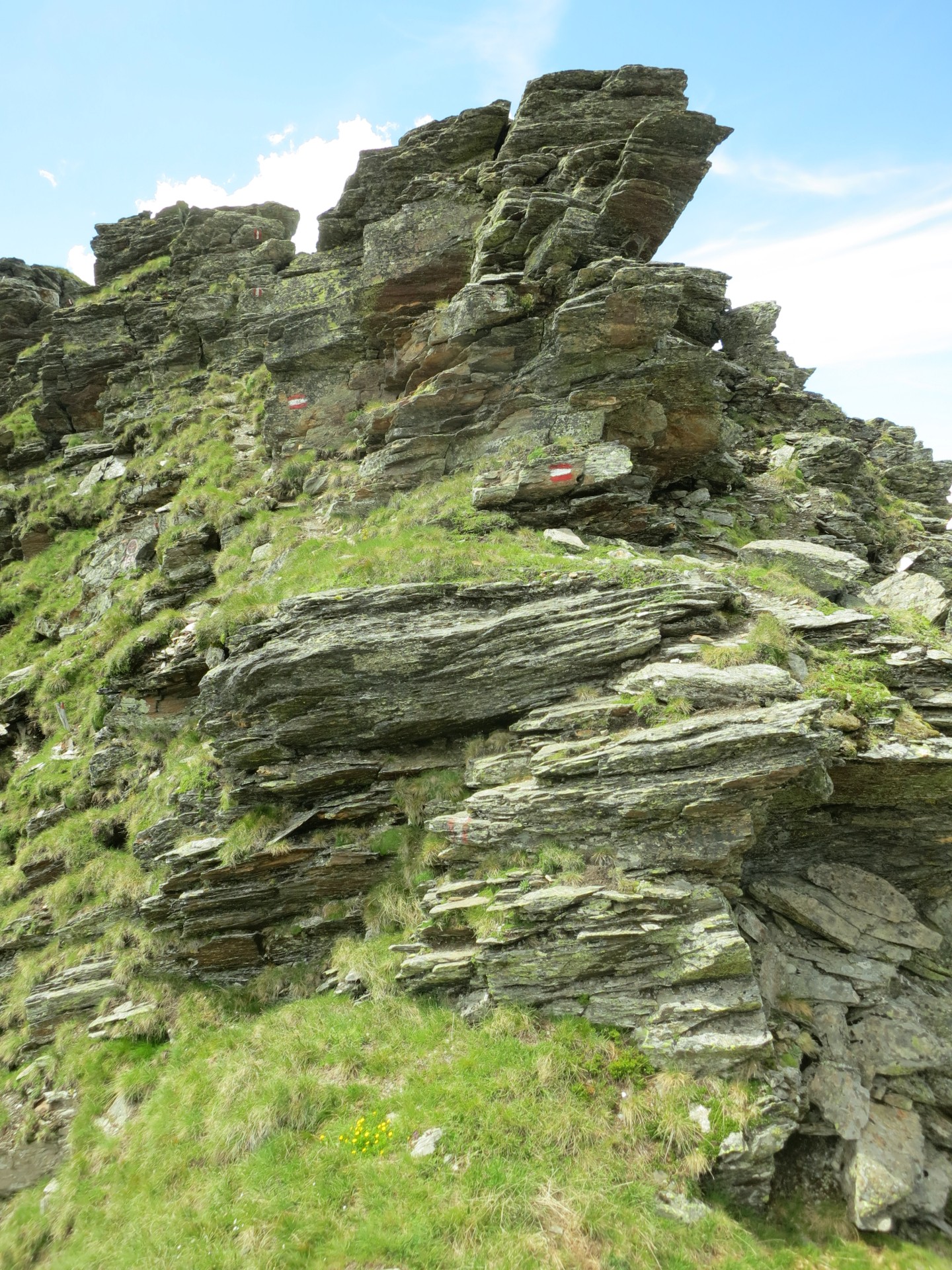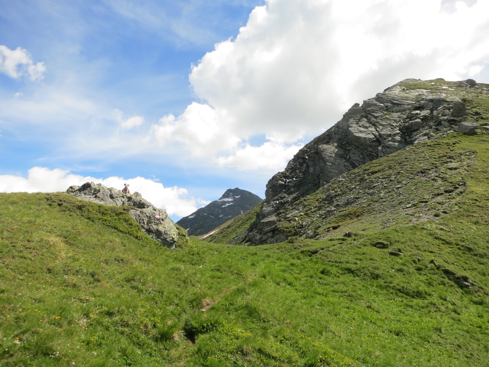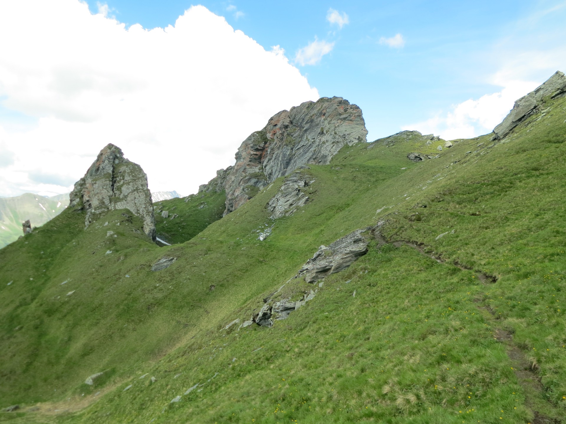 Schlüsselstelle dieser Tour ist der Übergang an der Niederen Scharte. Die kurze ausgesetzte Kletterei erfordert etwas Überwindung, und wer sich hier unsicher ist, sollte lieber umkehren. So wie auch meine Freundin und die beiden Hunde.