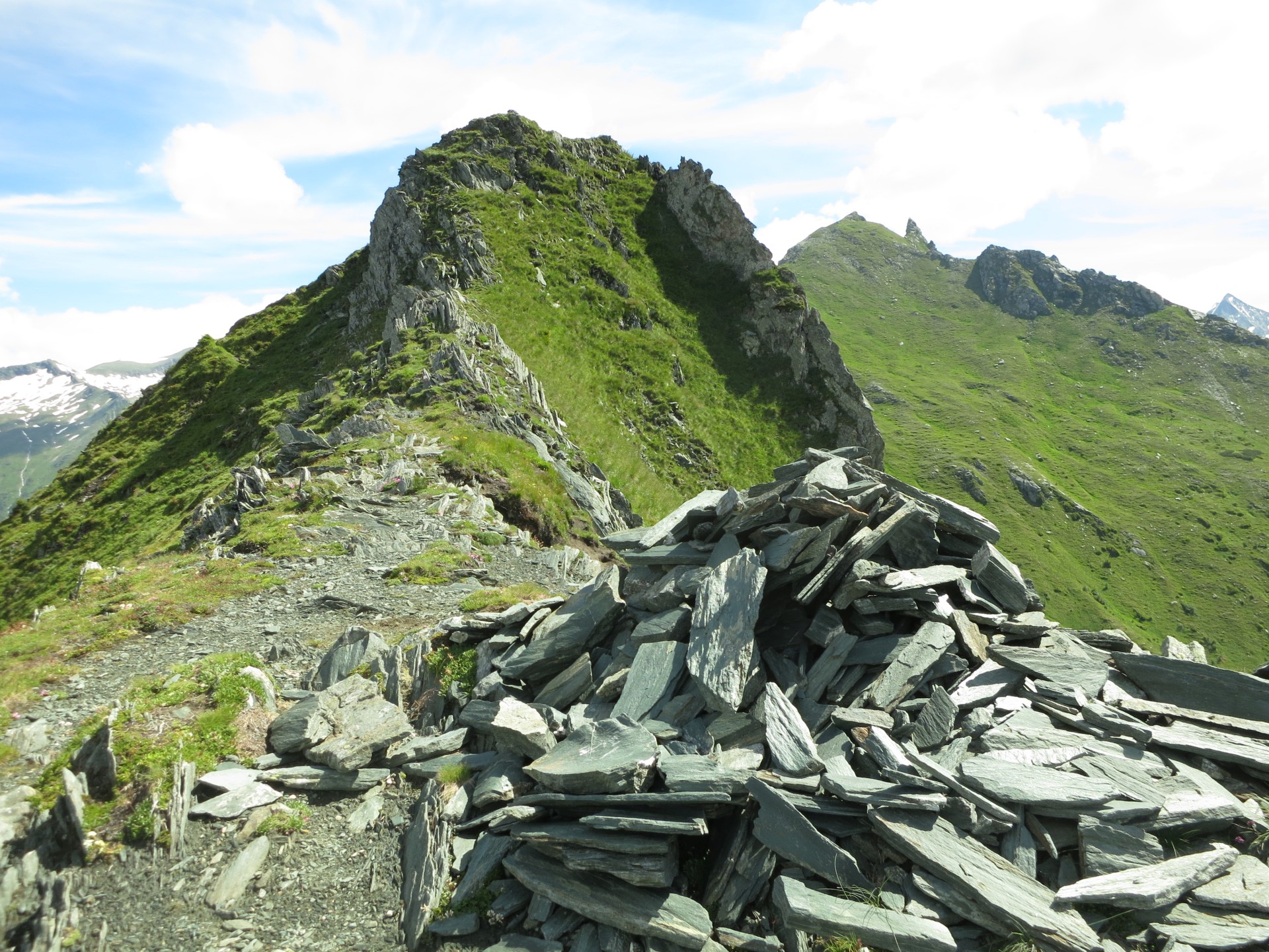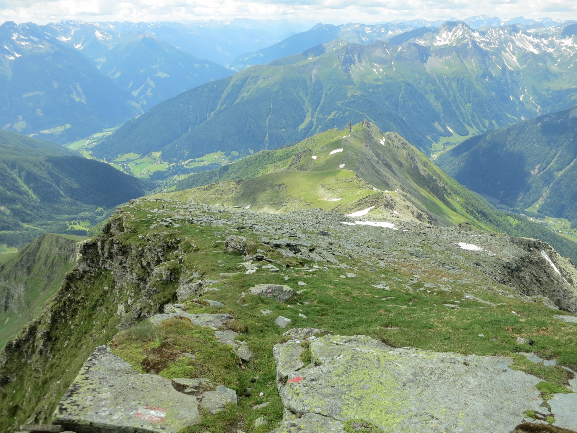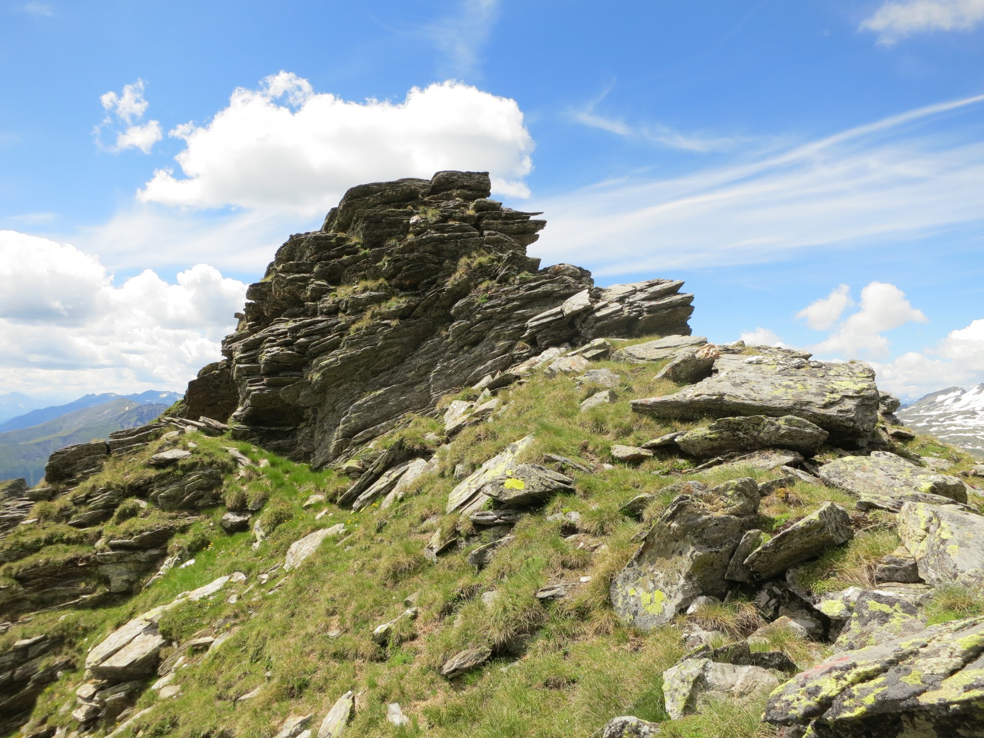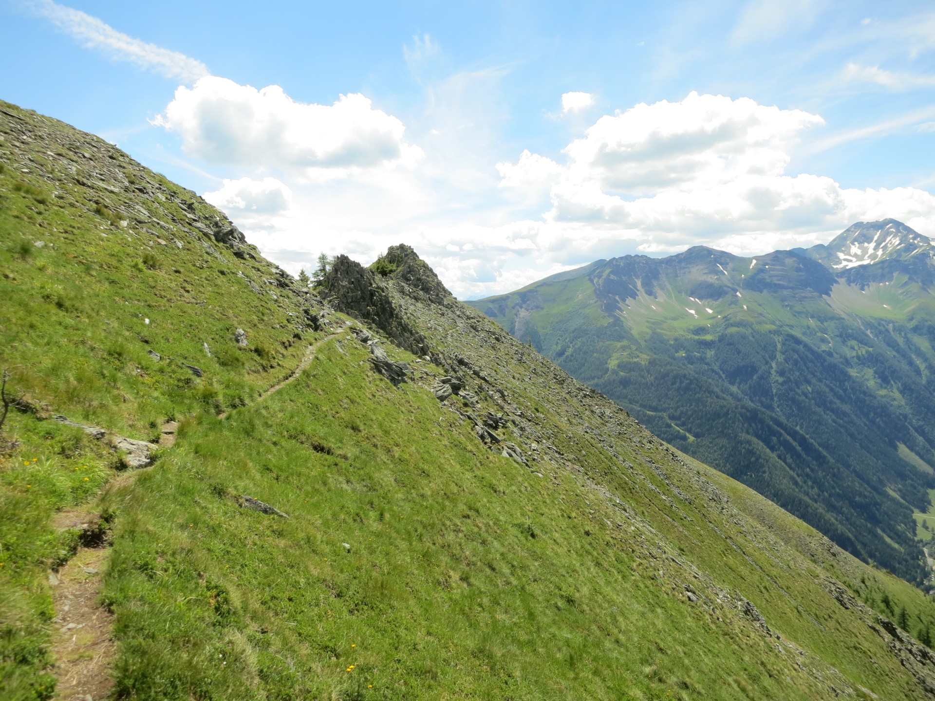 Wolliggerhütte - Auernig - Maresenspitz - Auernig - Wolliggerhütte - Wandern - Parken unterhalb der Wollinger Hütte. Über die Straße an der Hütte vorbei nach kurzer Zeit auf einen Pfad durch den Wald. Dann über Wiesen und steil hinauf bis zum Abzweig nach Mallnitz. Von hier nur noch wenige Meter bis zum Gipfel des Auernig. Jetzt recht flach immer wieder die Gratseite wechslend Richtung Törlköpfe. Nach einem Steilstück flach durch die Törlköpfe hindurch und über einen Grashang hinauf zu Niederen Scharte. In kurzer ausgesetzter Kletterei bis zum Schotterhang der Maresenspitze. Diesen komplett hinauf in vielen Kehren durch Schutt und Wiese bis zum Vorgipfel. Nun in teils ausgesetzter Kraxelei meist auf dem Grat entlang flach bis zum Gipfel.