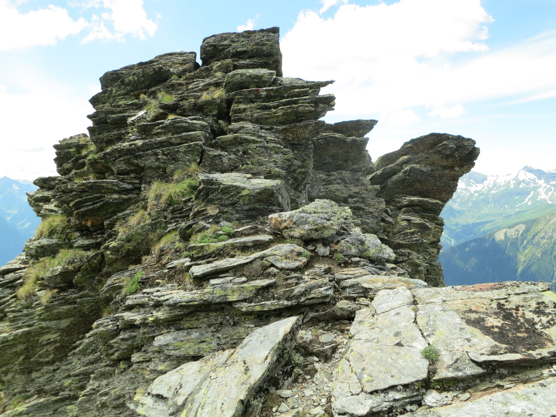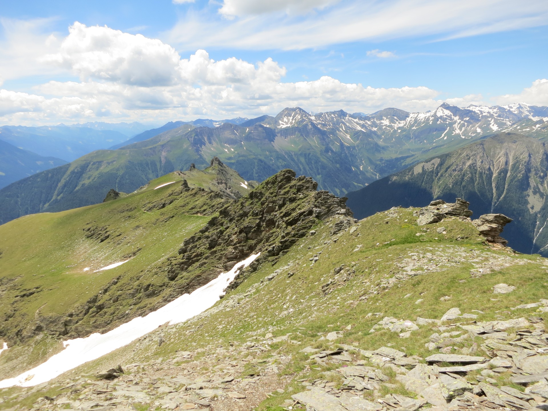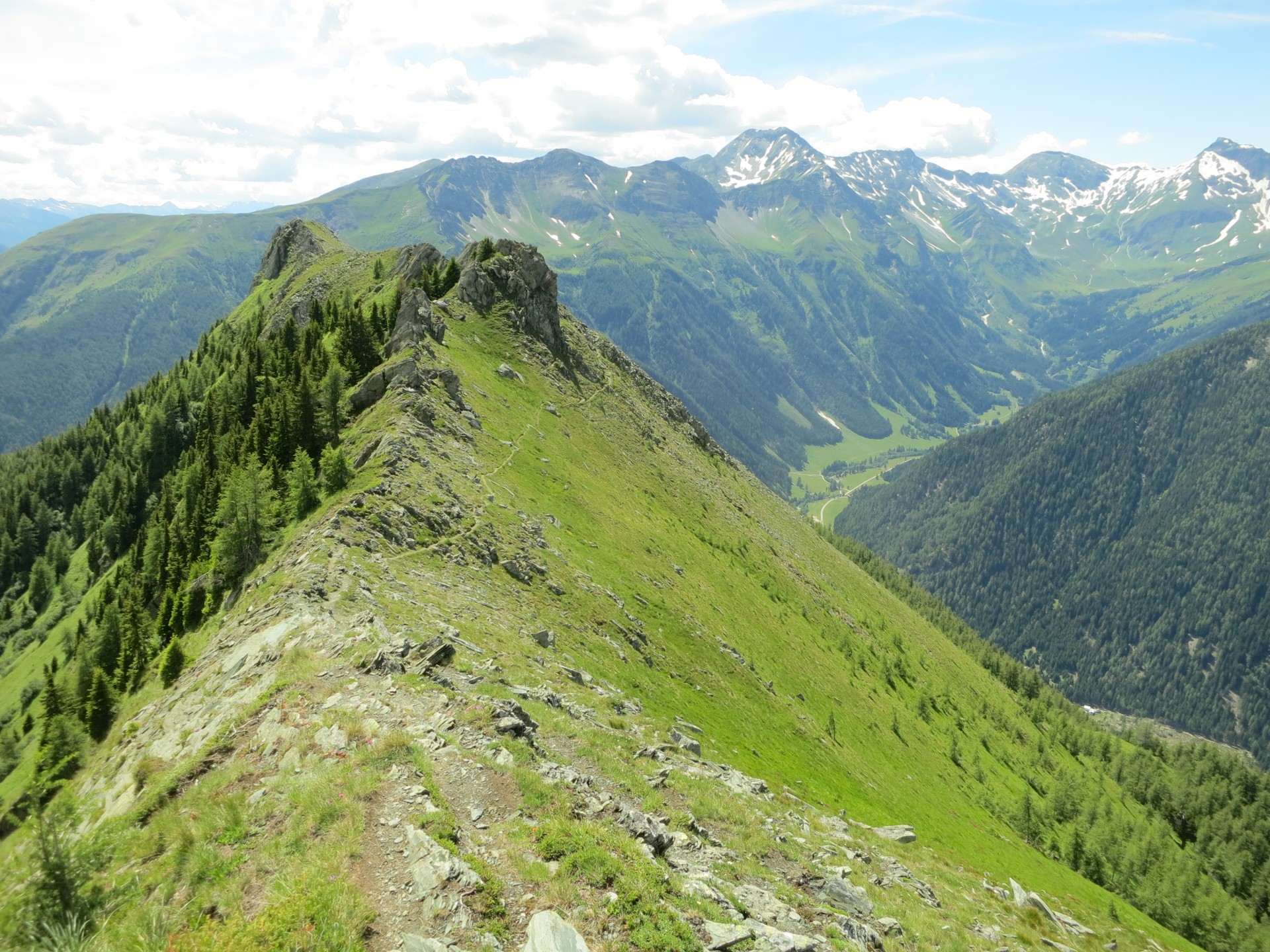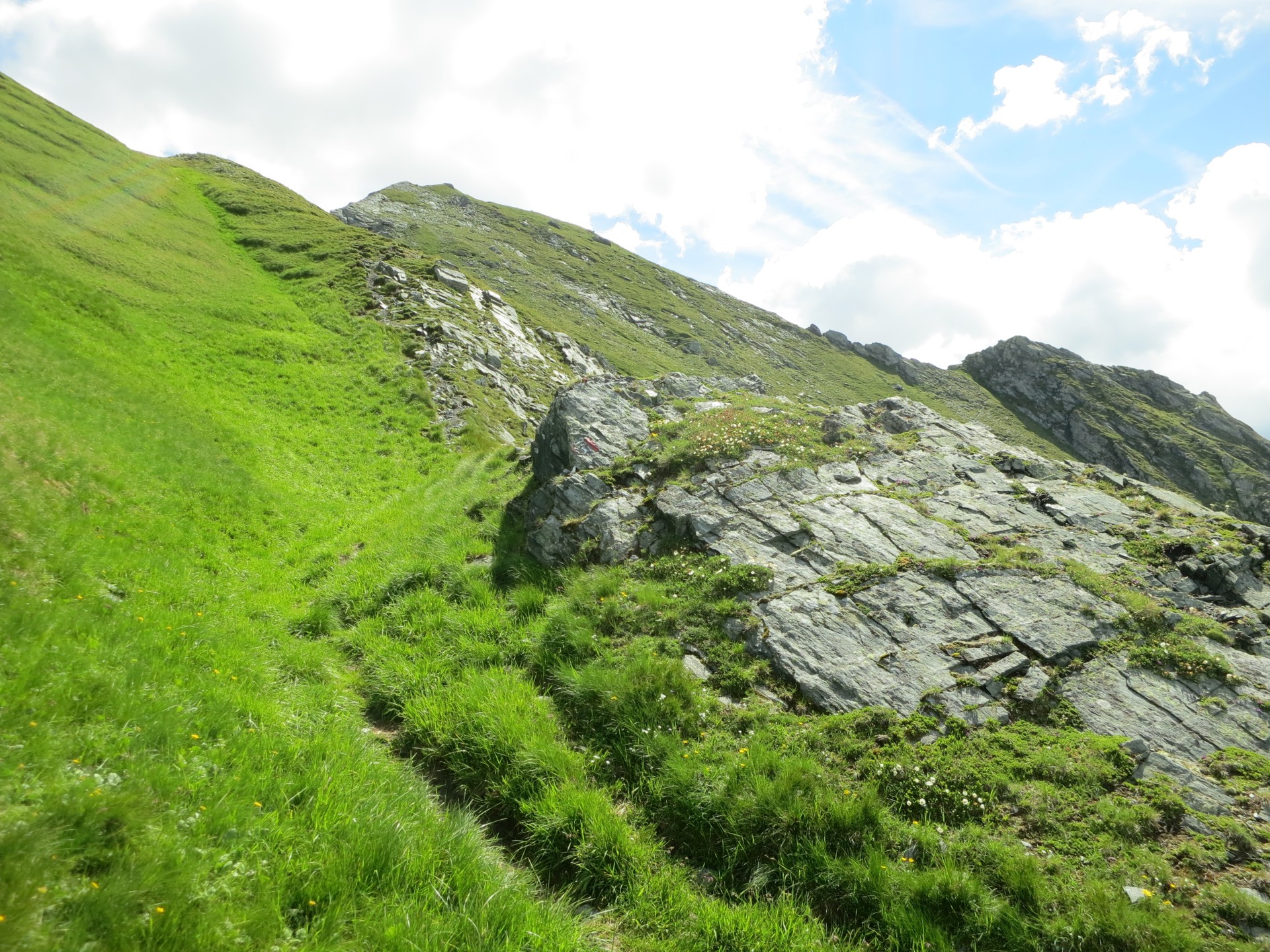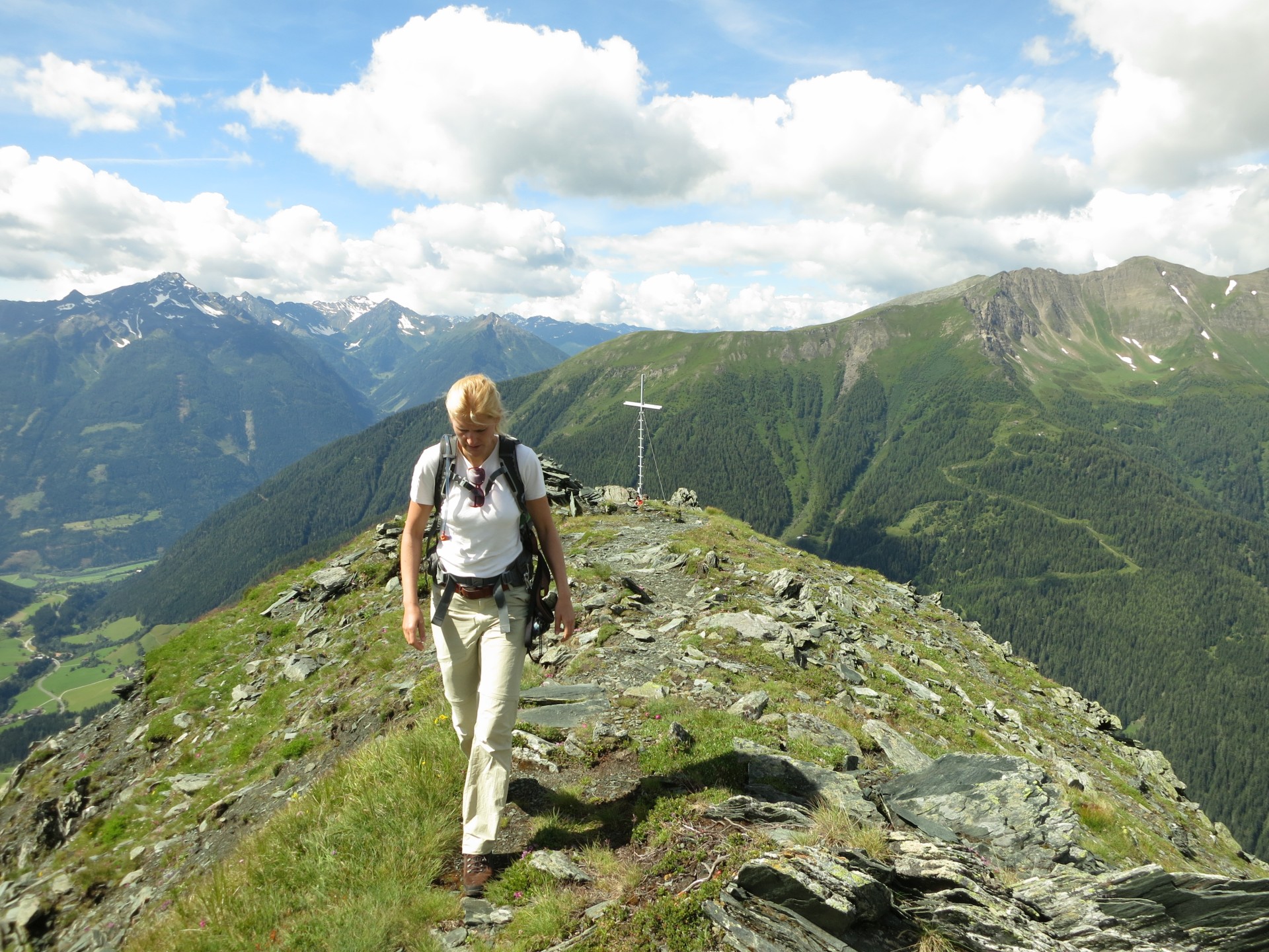 Wolliggerhütte - Auernig - Maresenspitz - Auernig - Wolliggerhütte - Wandern - Parken unterhalb der Wollinger Hütte. Über die Straße an der Hütte vorbei nach kurzer Zeit auf einen Pfad durch den Wald. Dann über Wiesen und steil hinauf bis zum Abzweig nach Mallnitz. Von hier nur noch wenige Meter bis zum Gipfel des Auernig. Jetzt recht flach immer wieder die Gratseite wechslend Richtung Törlköpfe. Nach einem Steilstück flach durch die Törlköpfe hindurch und über einen Grashang hinauf zu Niederen Scharte. In kurzer ausgesetzter Kletterei bis zum Schotterhang der Maresenspitze. Diesen komplett hinauf in vielen Kehren durch Schutt und Wiese bis zum Vorgipfel. Nun in teils ausgesetzter Kraxelei meist auf dem Grat entlang flach bis zum Gipfel.