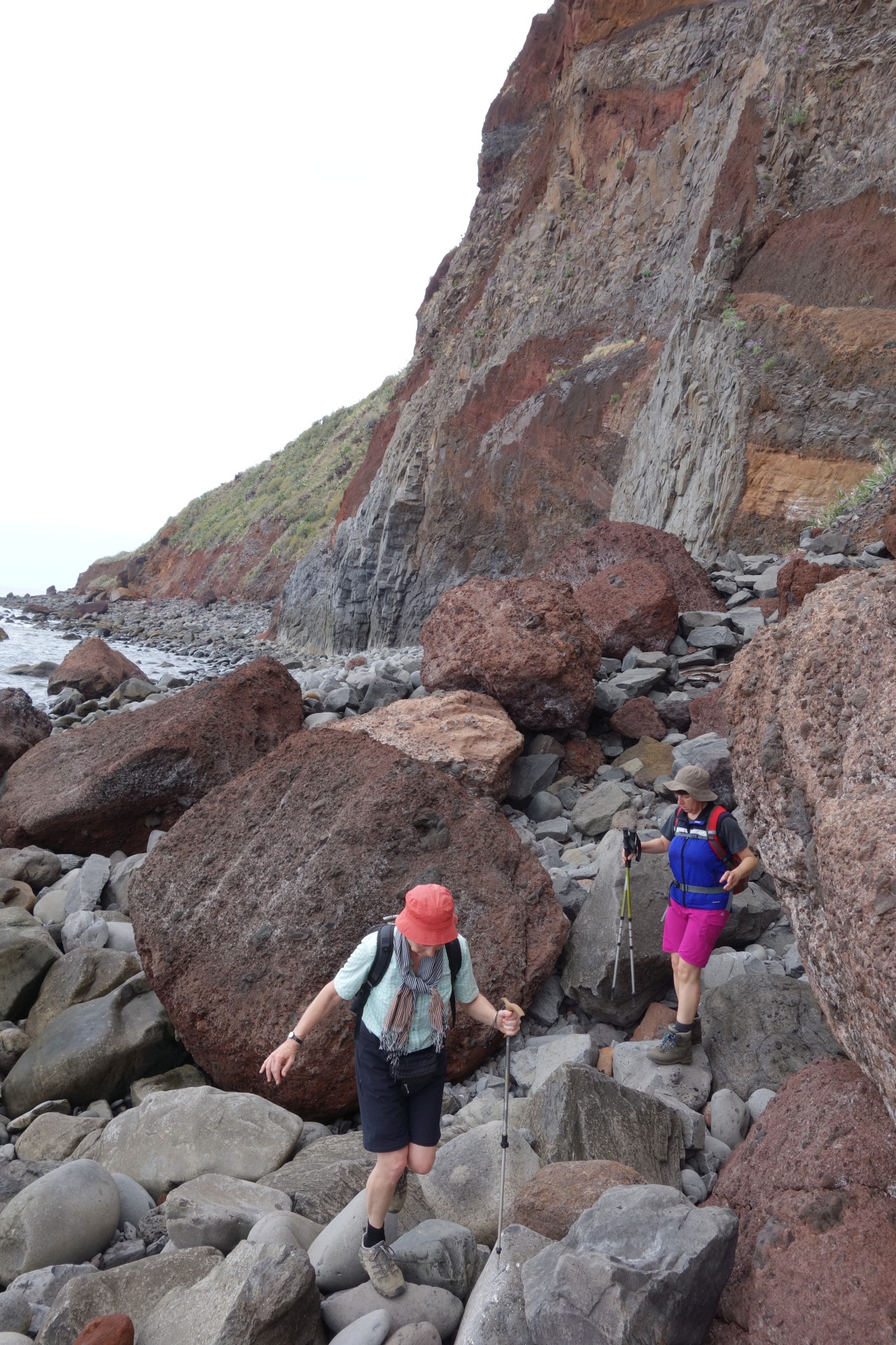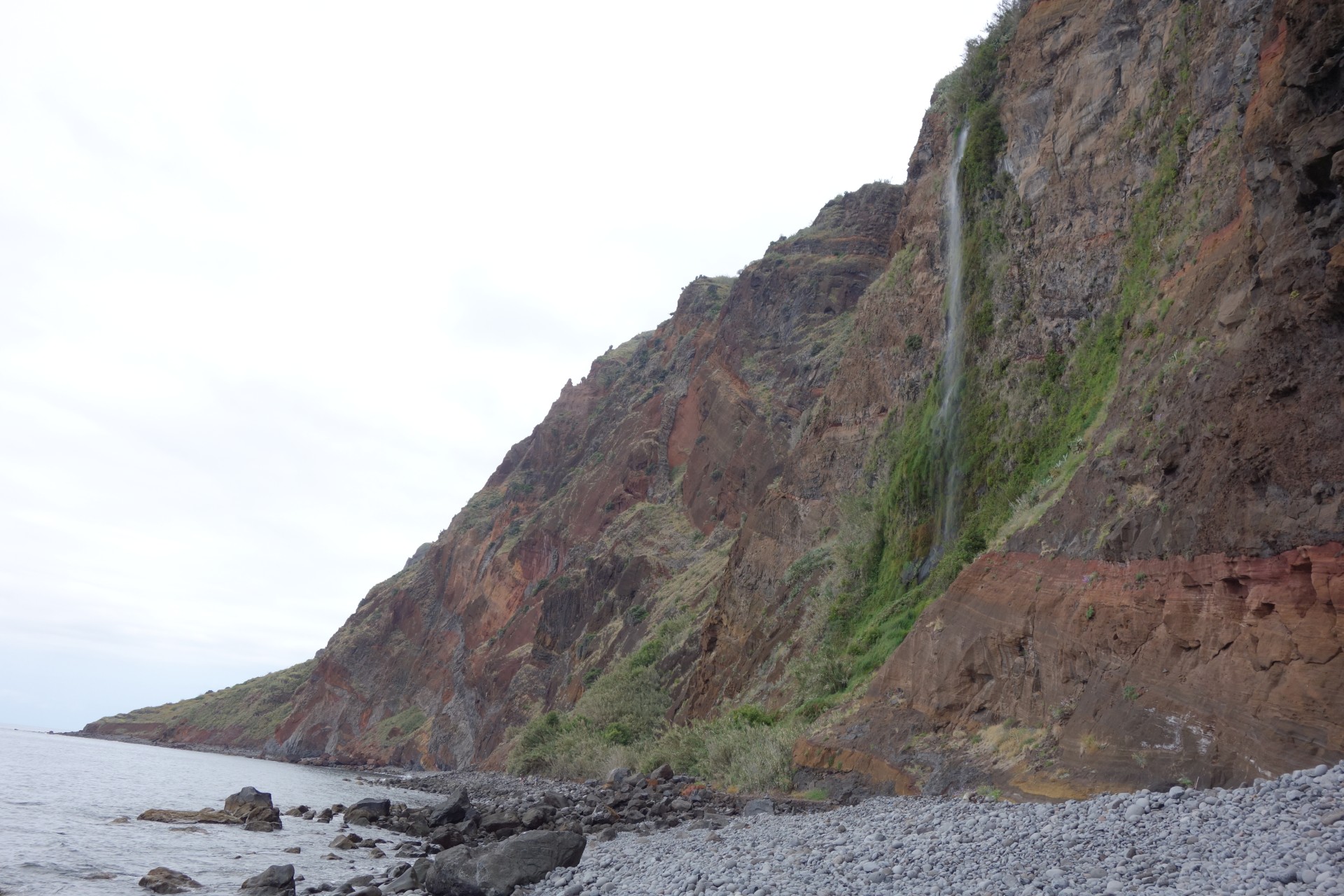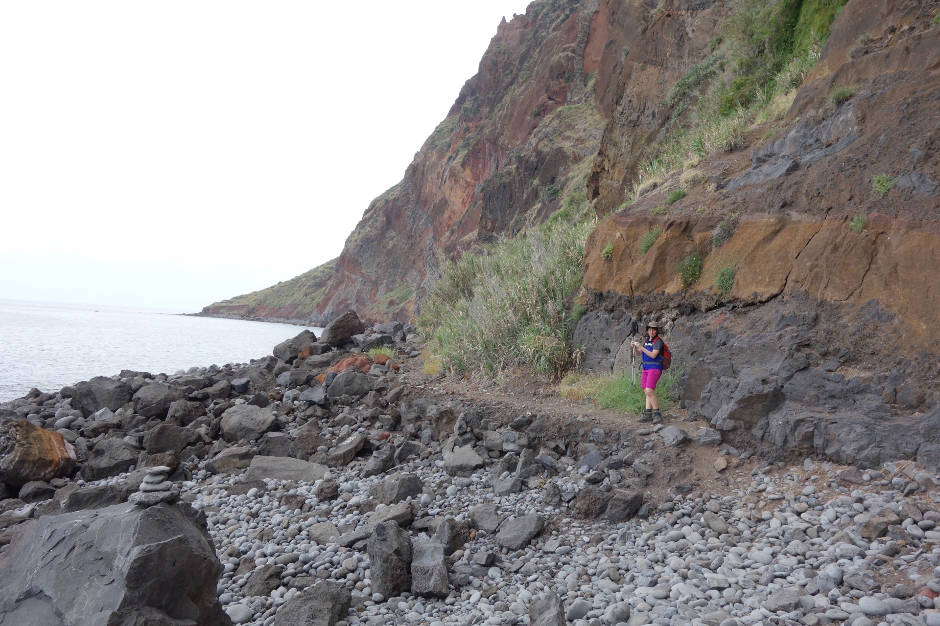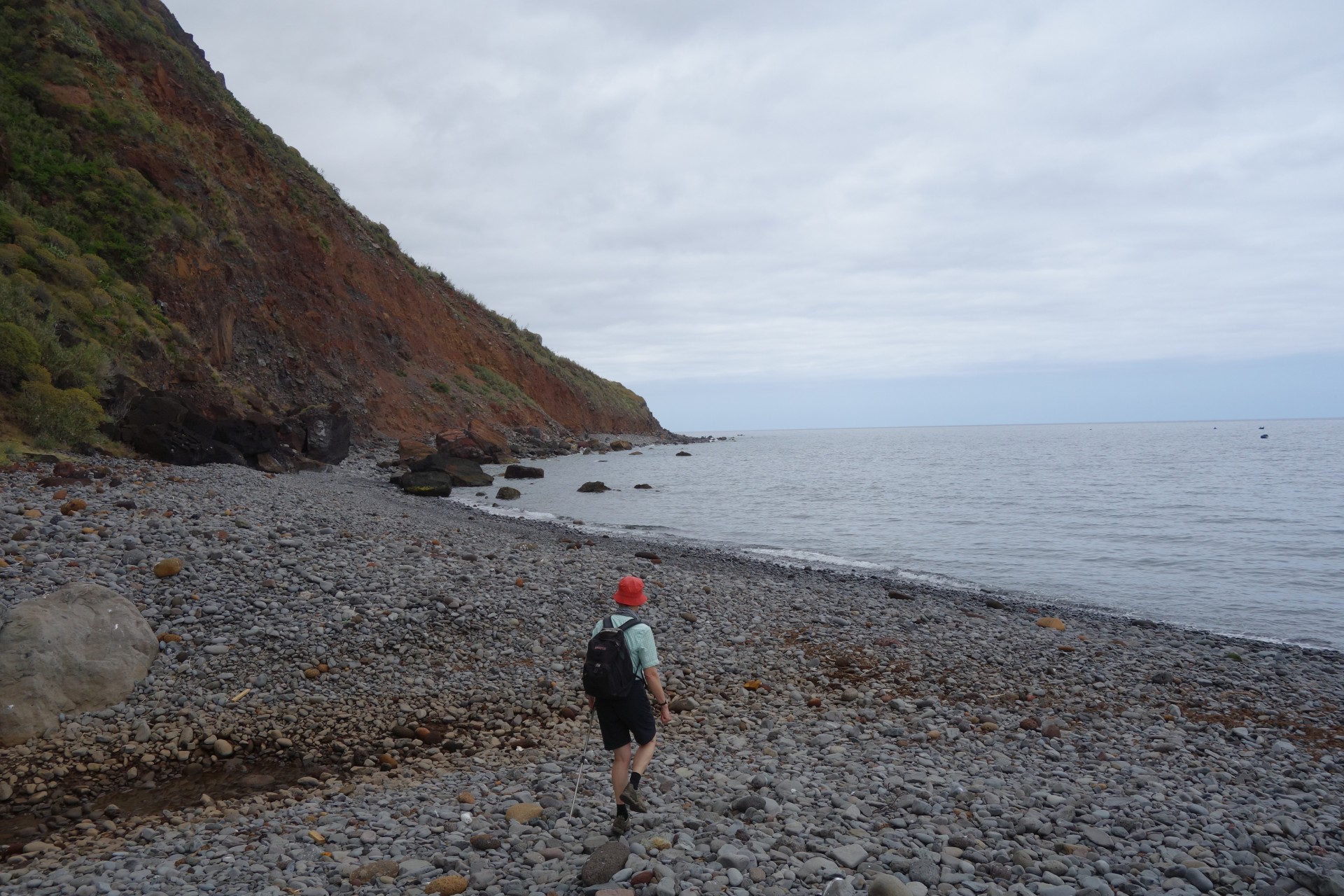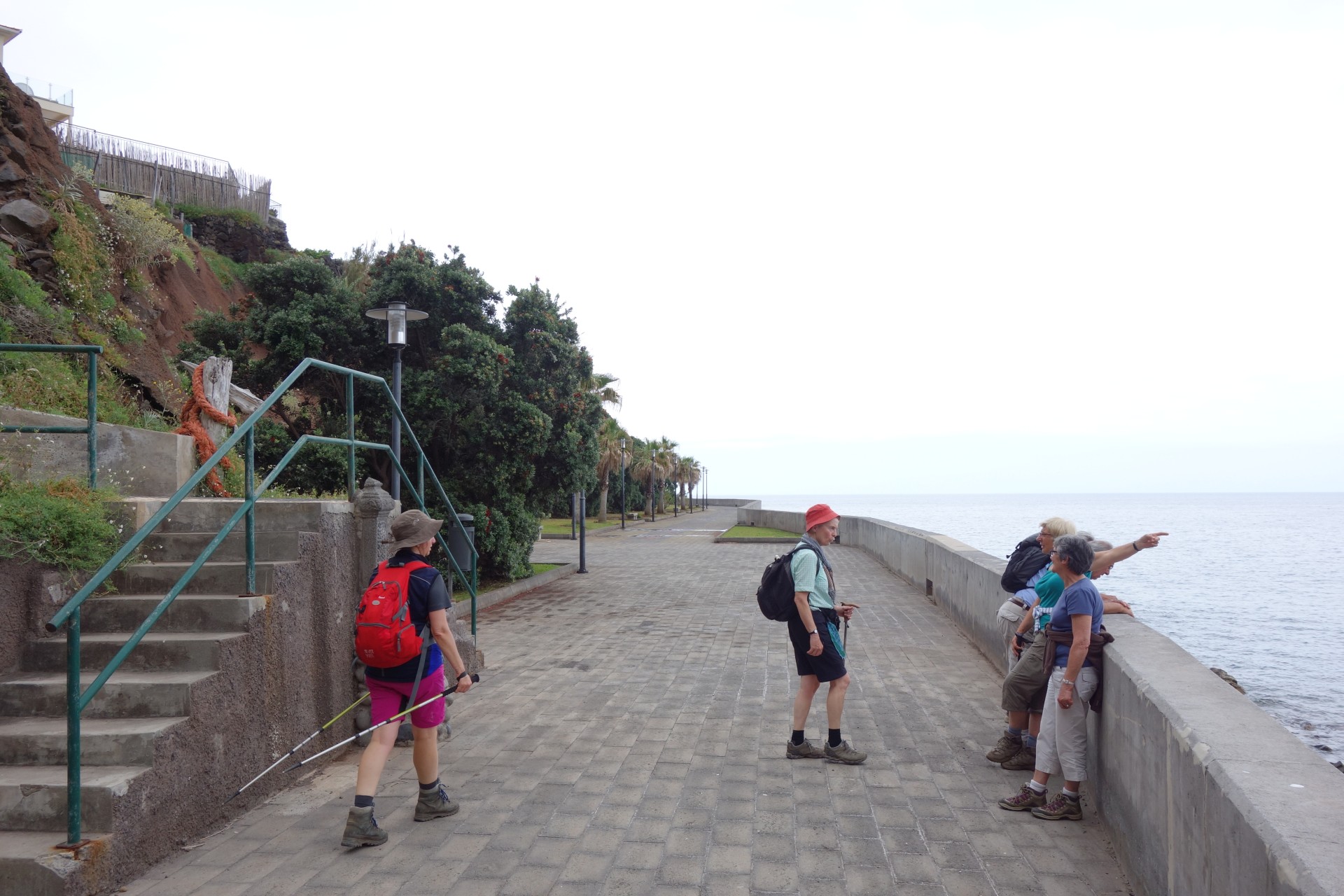 Vom Hotel über Treppen hinunter zum Aussichtspunkt und ab da über unendlich viele runde Stufen in zahlreichen Kehren hinunter zum Hafen von Paul do Mar. Dort über die Mauer zum Strand und diesem weglos bis nach Jardim do Mar.