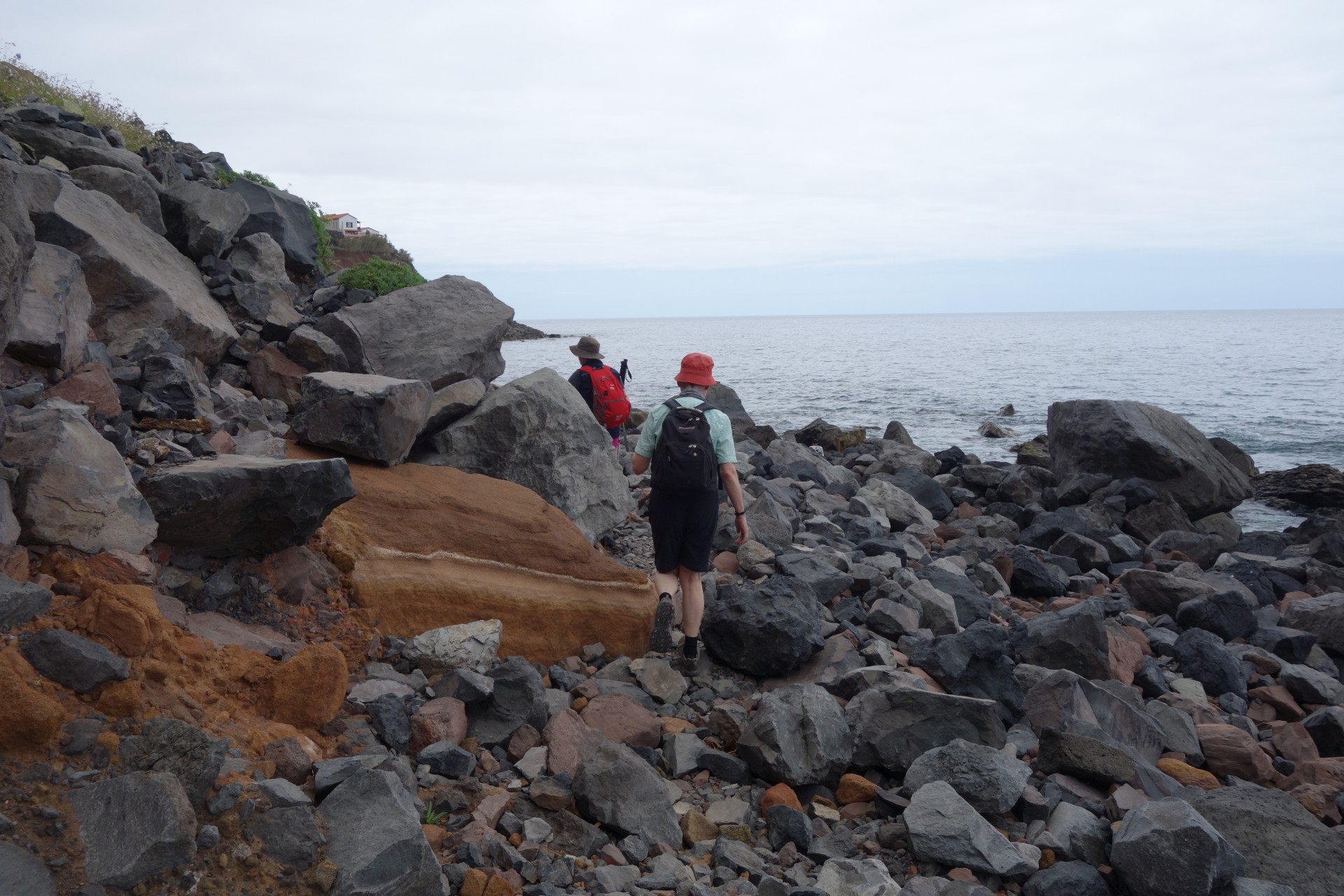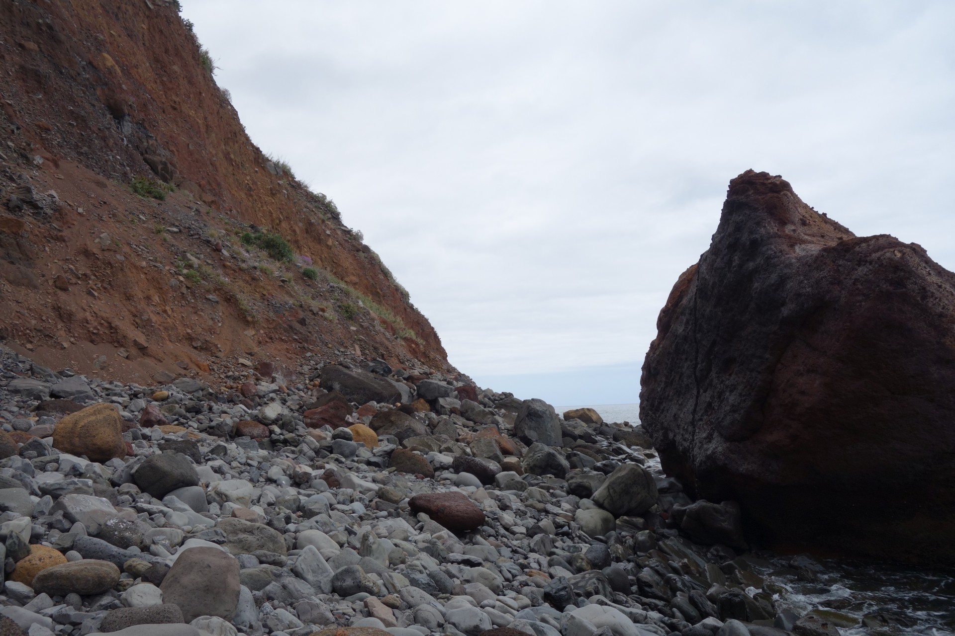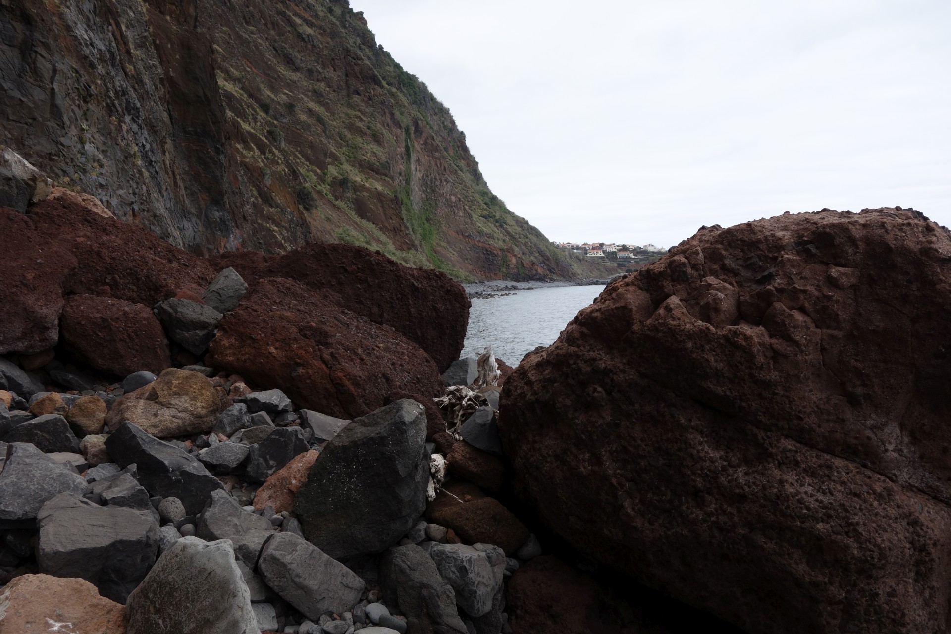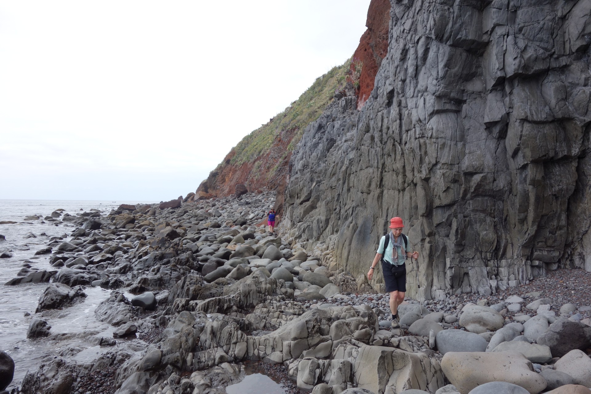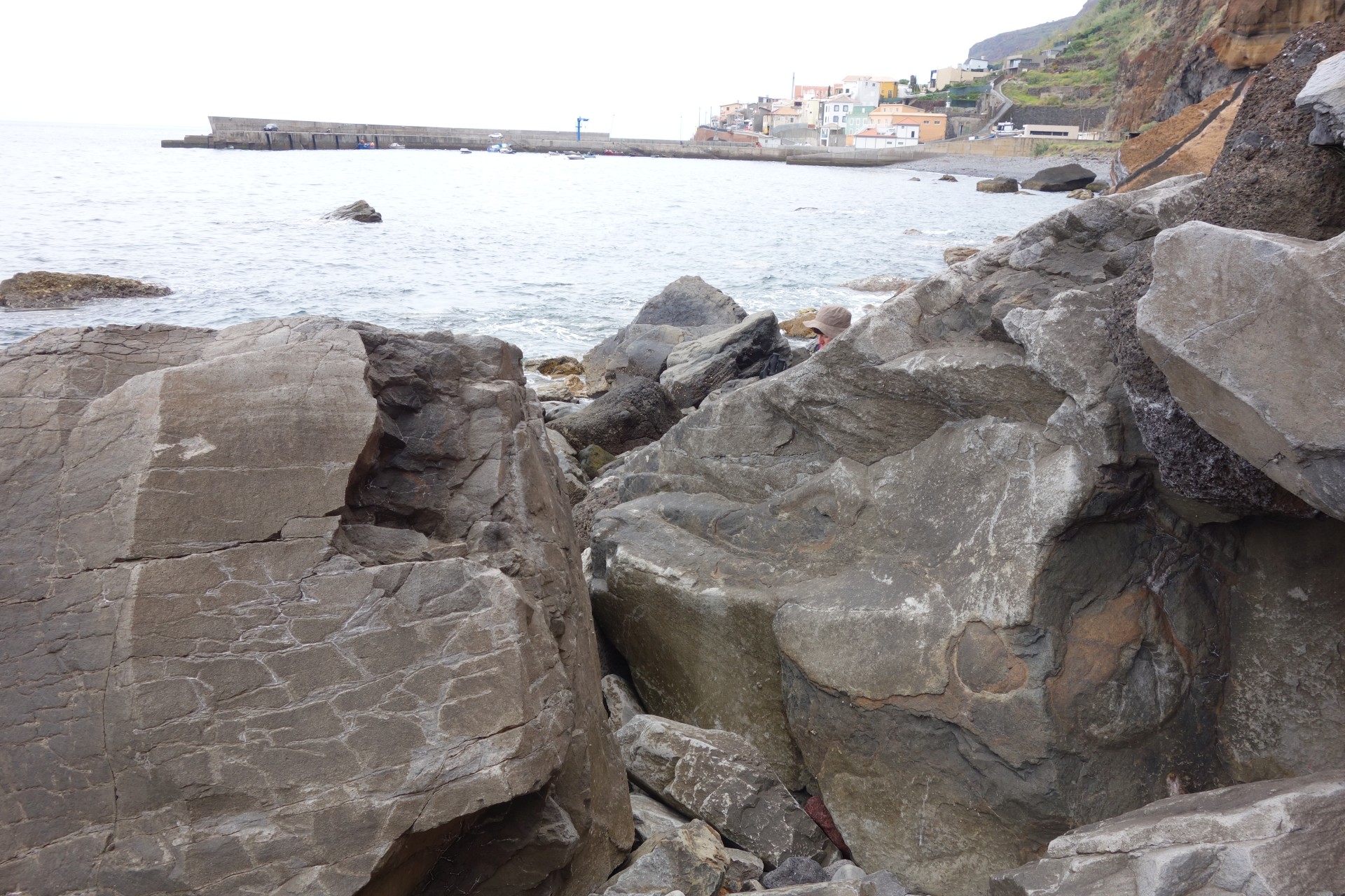 Vom Hotel über Treppen hinunter zum Aussichtspunkt und ab da über unendlich viele runde Stufen in zahlreichen Kehren hinunter zum Hafen von Paul do Mar. Dort über die Mauer zum Strand und diesem weglos bis nach Jardim do Mar.