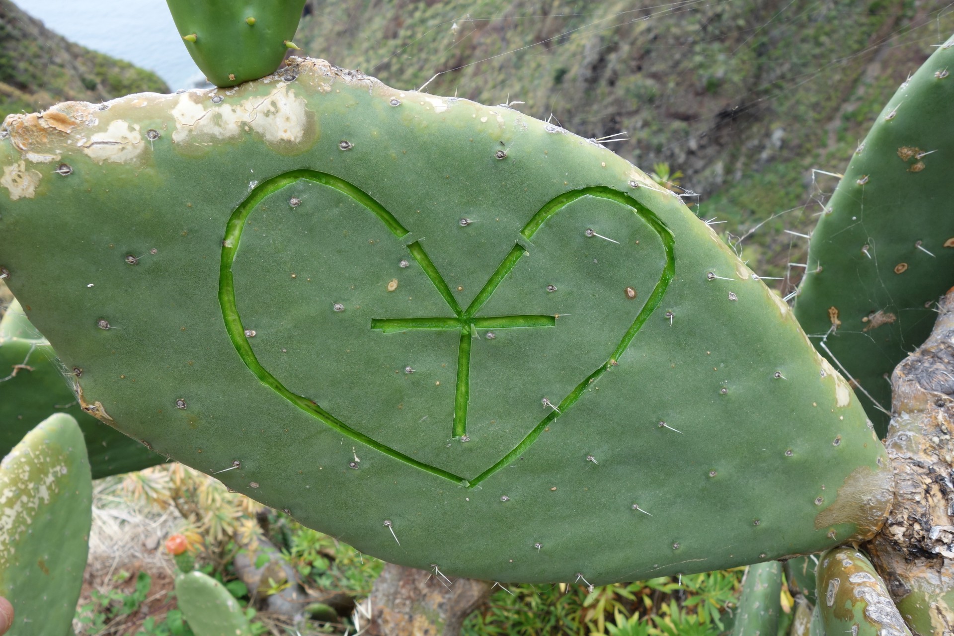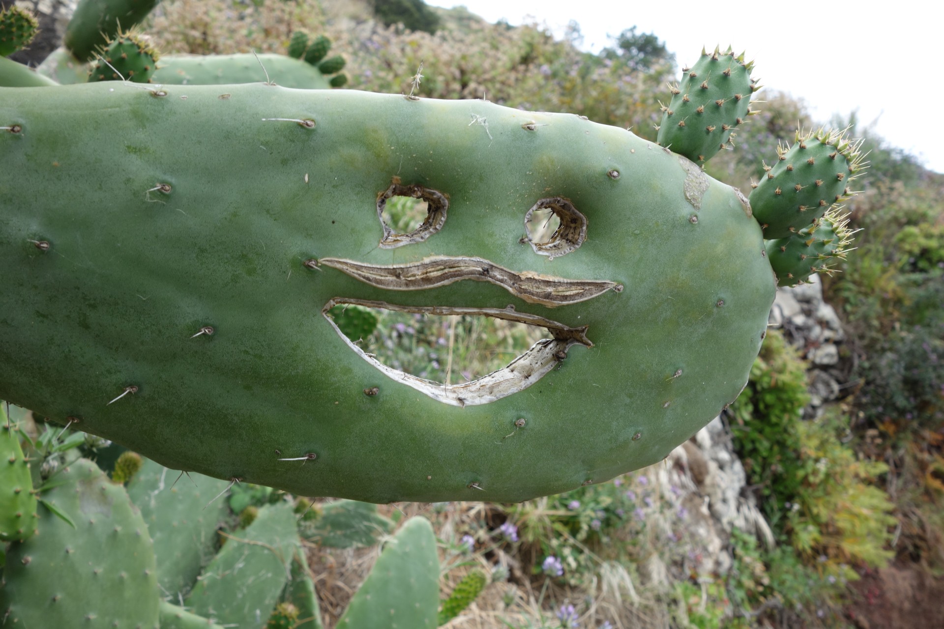 Jardim Atlantico - Jardim do Mar - Jardim Atlantico: Jemand hat ein lustiges Gesicht in einen Kaktus geschnitzt