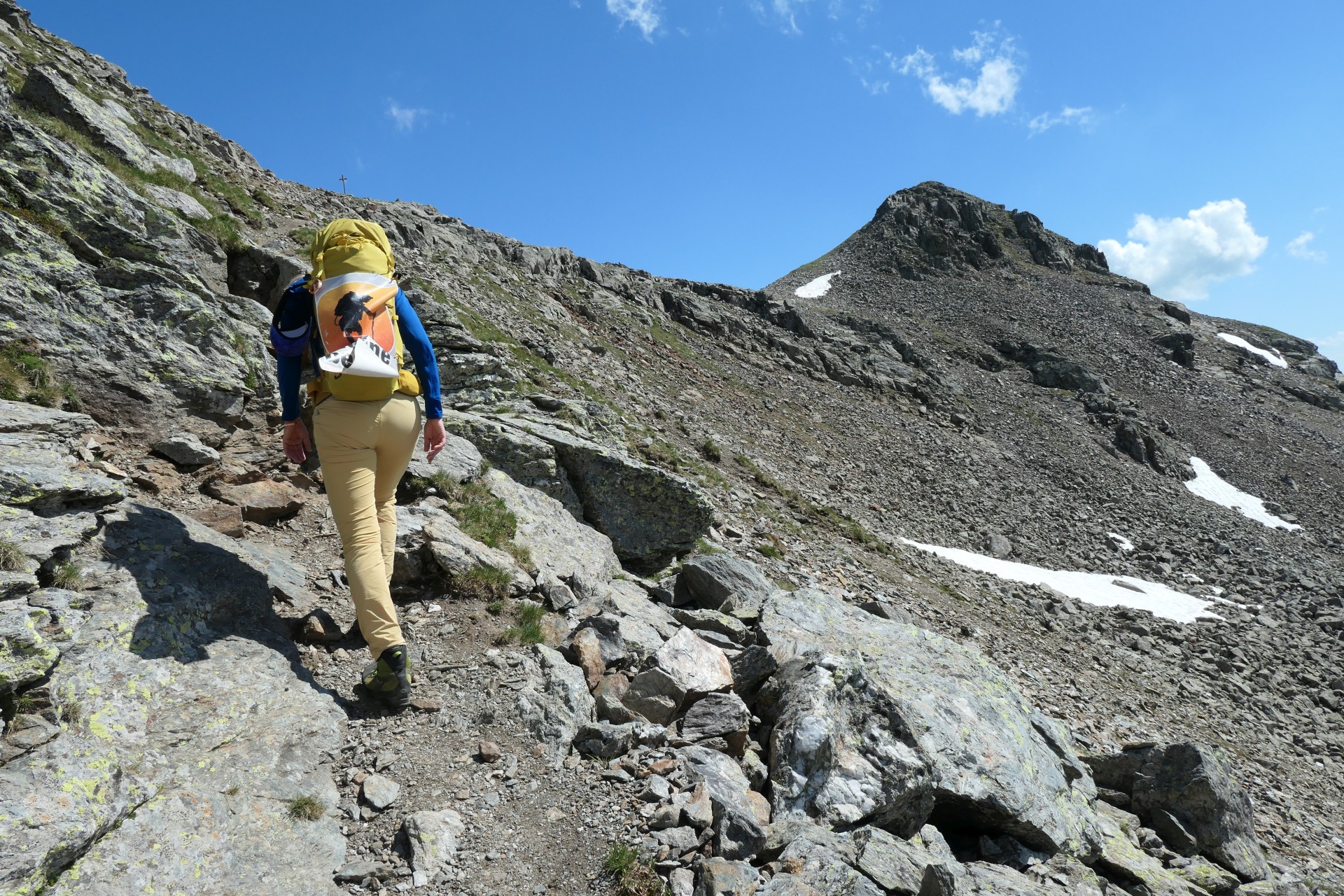 Beim Weg zum Plankenhorn beinahe abgebrochen wegen Sturmböen am Grat. Dennoch weiter über Gertrumjoch und Bischofer über anspruchsvollen Steig bis zum Einschnitt zwischen Hirzer und Bischofer.